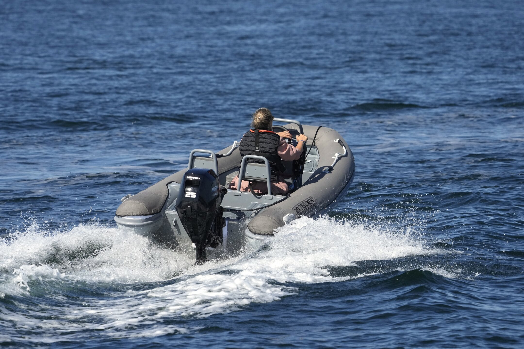 | Udstyr | Aluminiums skrog, styrepult med ekstra sæde på siden og stuverum, agtersofa for to personer, stuverum for, kunsstof dæk, indbygget 25l tank, pumpe og rep sæt. |
