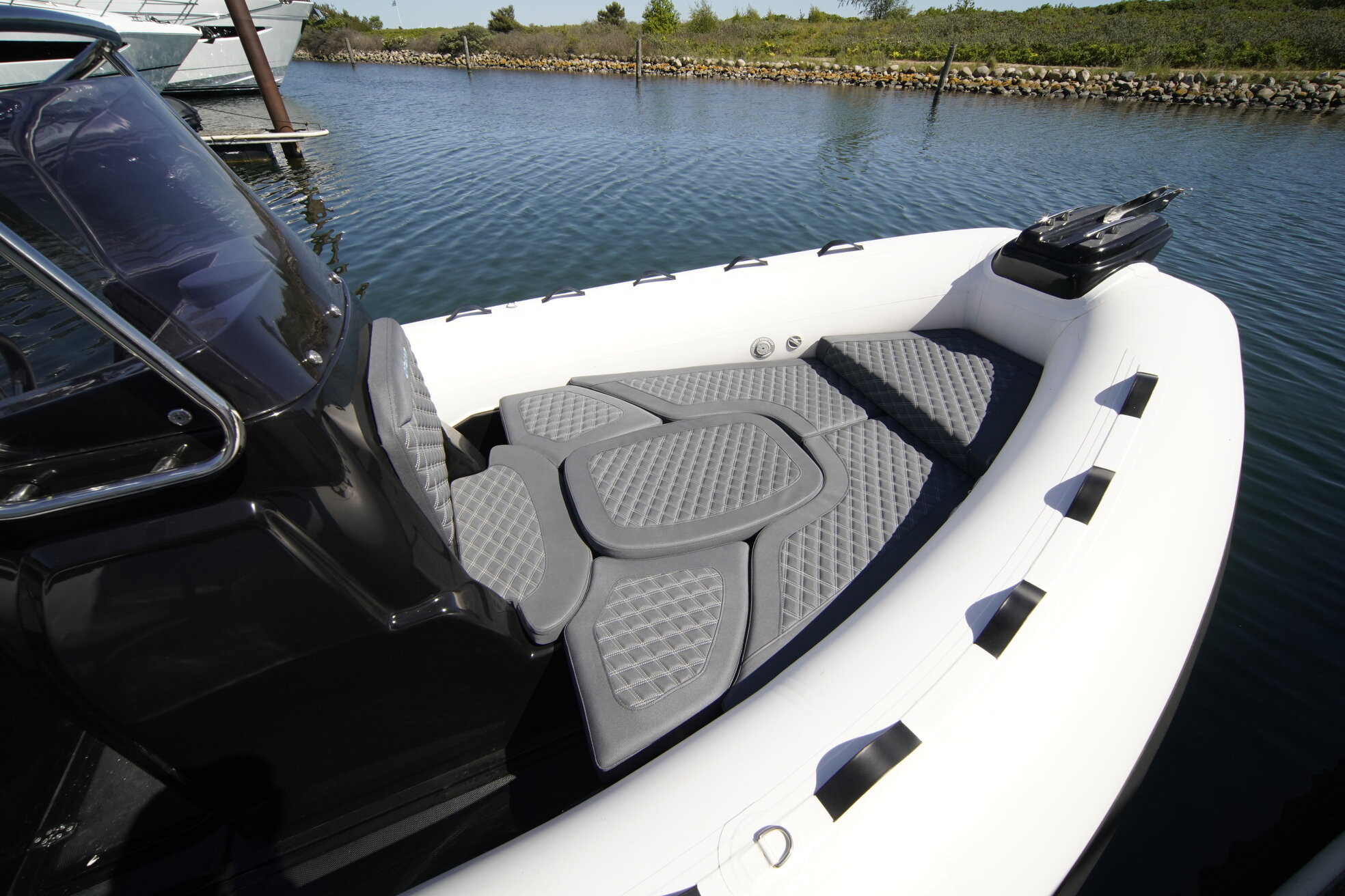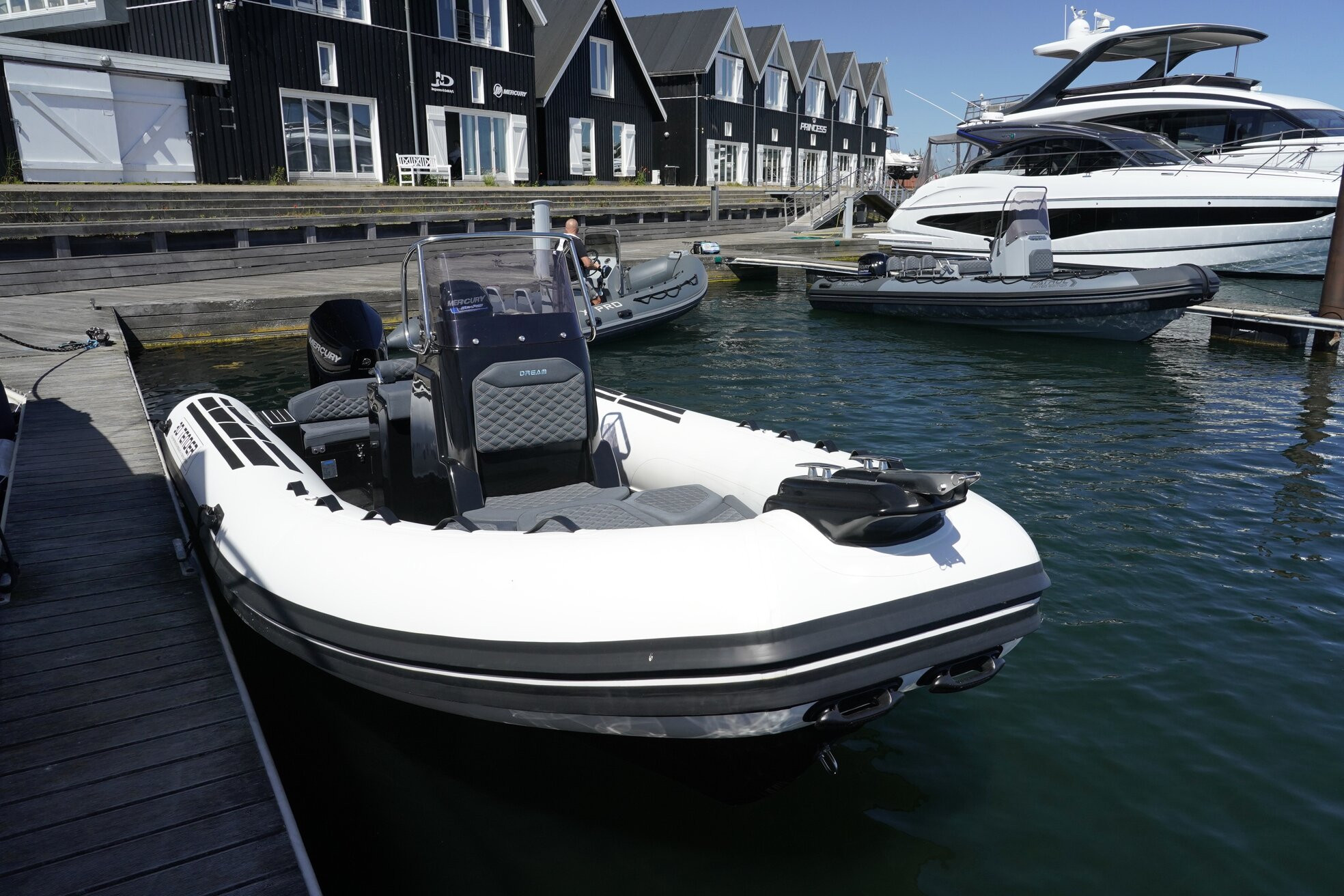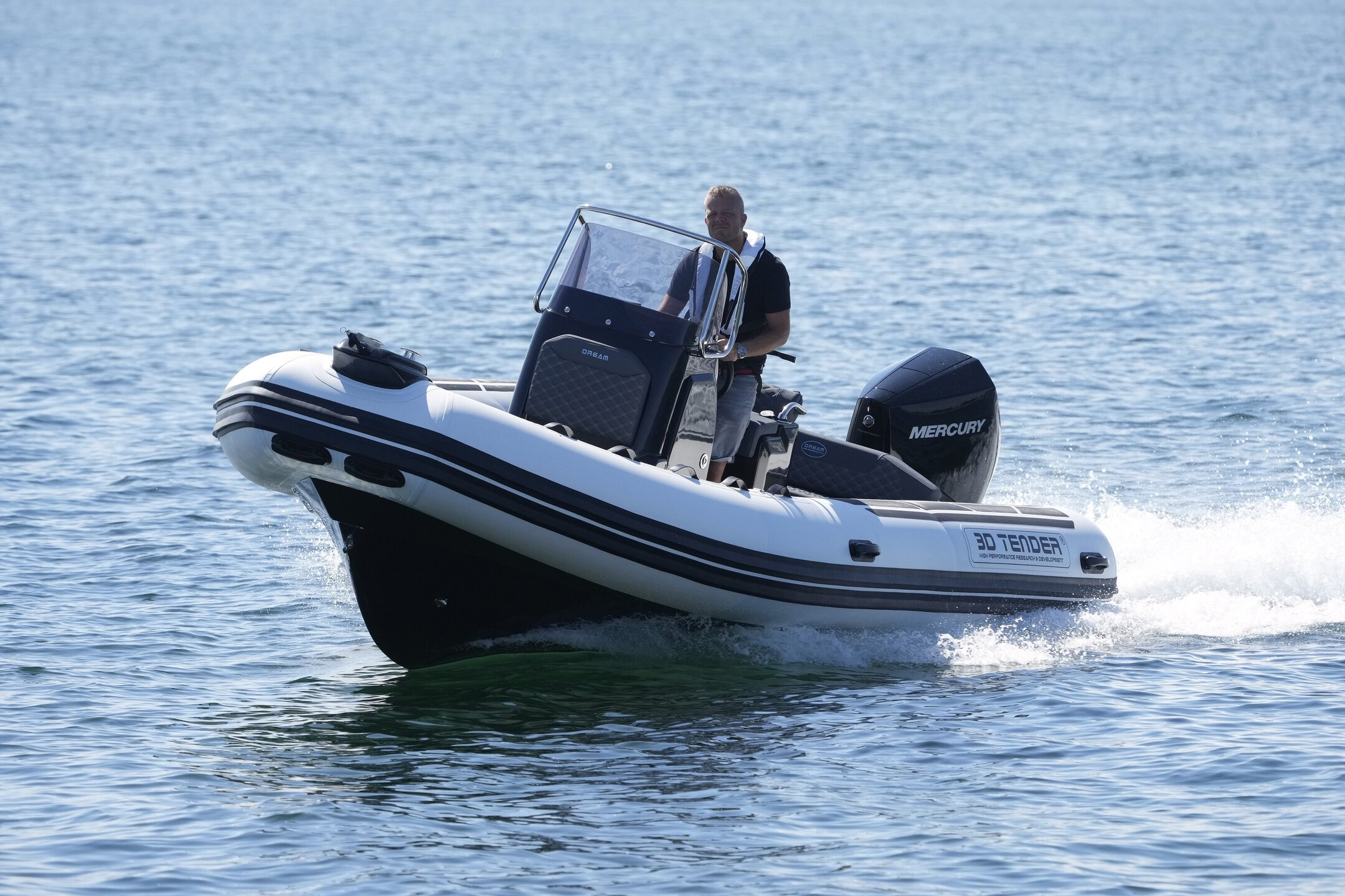 DREAM 655 er den optimale fornøjelses båd, designet for maksimal komfort og elegance. Her er intet overladt til tilfældighederne, fra det dybe V-skrog som giver dig høj komfort ved sejlads i bølger, til det omfattende standard udstyr. Uanset om du leder efter den hurtidste RIB på vandet, om du skal på en stille tur med familien, eller du skal bruge en dag for anker ved stranden så kan Dream 655 løse opgaven. Picknic bord, solseng, eksklusive sofaer med hynder og masser af stuveplads er nogle at de ting der er standard på 655 Dream.