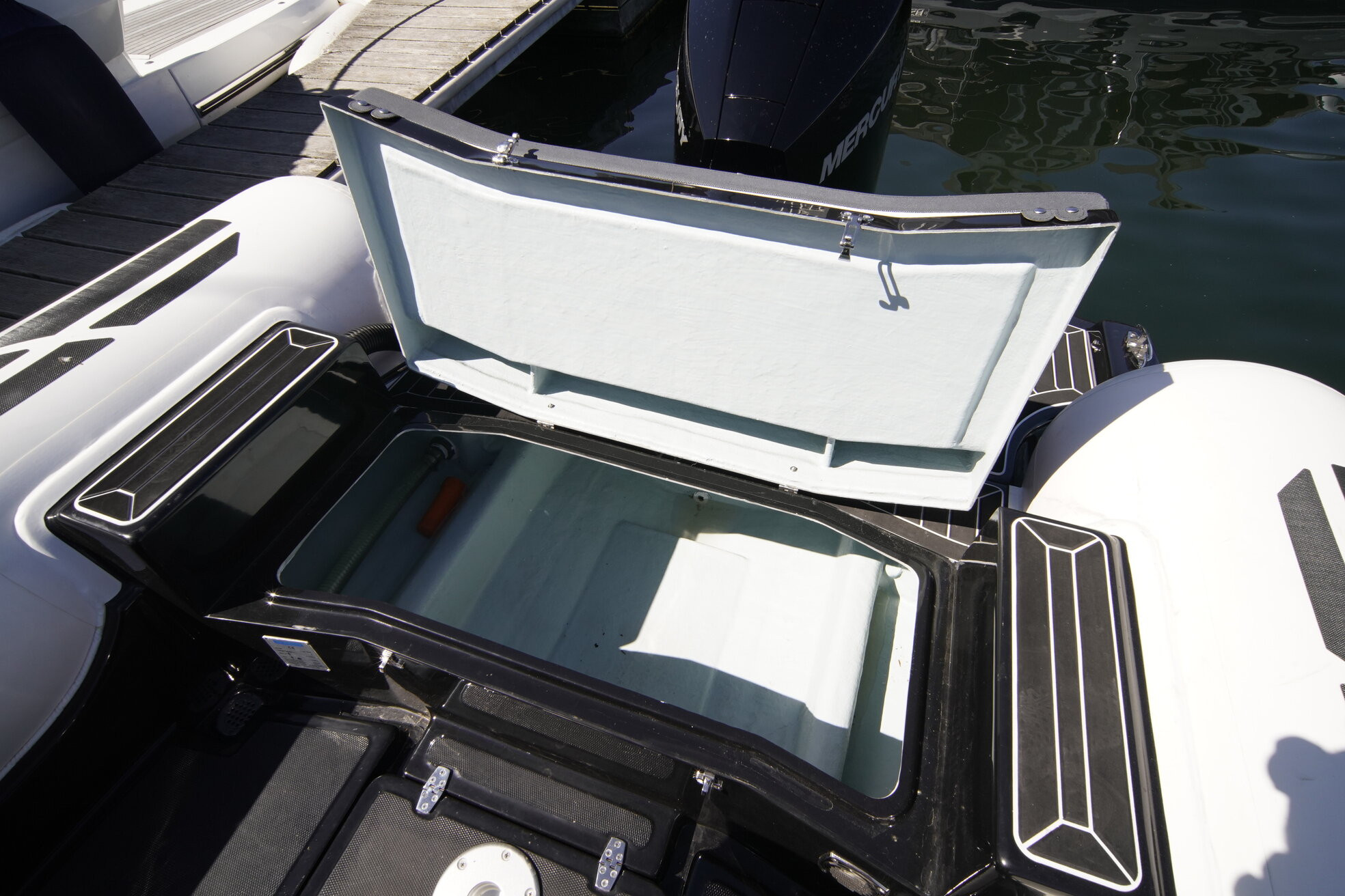 | Udstyr | Styrepult med tilbagelænet vindspejl, førersofa med stuverum og bagudvendt sæde, agtersofa for 3 personer, badestige, solseng, kunsstof dørk, indbygget brændstoftank 100l, selvlænsende dørk, ankerbrønd, ankerrulle, badeplatforme agter, picknic bord. |