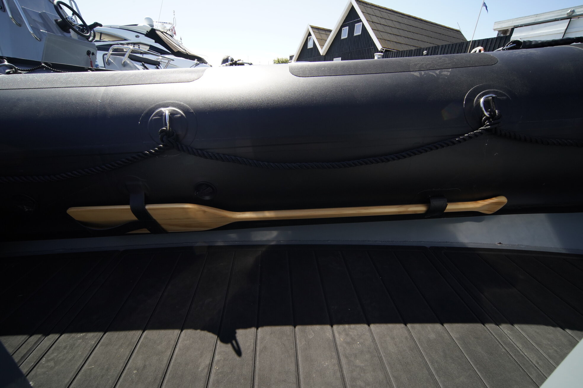 | Udstyr | Styrepult med stuverum, ryglæn/sæde med stort stuverum, bænksæde agter, Hydraulisk styring, 70l indbygget tank, vandski stang, lænsepumpe, ankerrulle, stuverum for, antiskrid dæk, sikkerdsheds greb. |