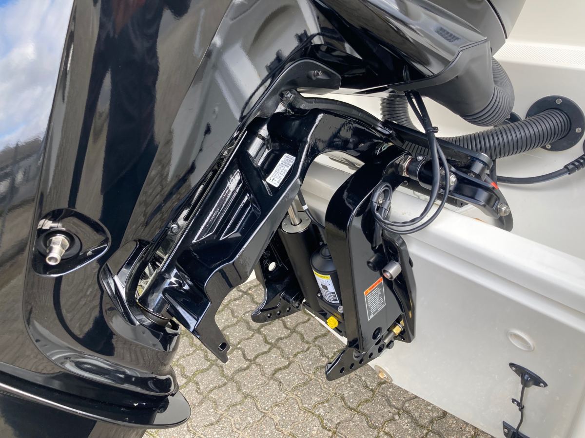 Standardudstyr: Badestige, navigationslys, selvlænsende cockpit, badeplatform, flagholder, SmartCraft speedometer og omdrejningstæller, 12V udtag, 2 sovepladser, kabinelys, tagluge, drejeligt føresæde, passagerstol, cockpit hynder, cockpit bord, automatisk lænsepumpe, hydraulisk styring, vinduesviser stb. m.m. Ekstra udstyr: Monteret med Mercury F115 EXLPT CT, cockpit bord i ægte teak (6.328,-) Solindsats (6.012,-) Bimini med sider - fuld kaleche ( 20.873,-) Garmin 72 CV inkl. GT 20 Transducer ( 7.995,-) Bemærk søkort skal tilkøbes alt efter område. Montage. inkl. batteri, kabler installation m.m. (6.995,- ) Motorlås (599,-)