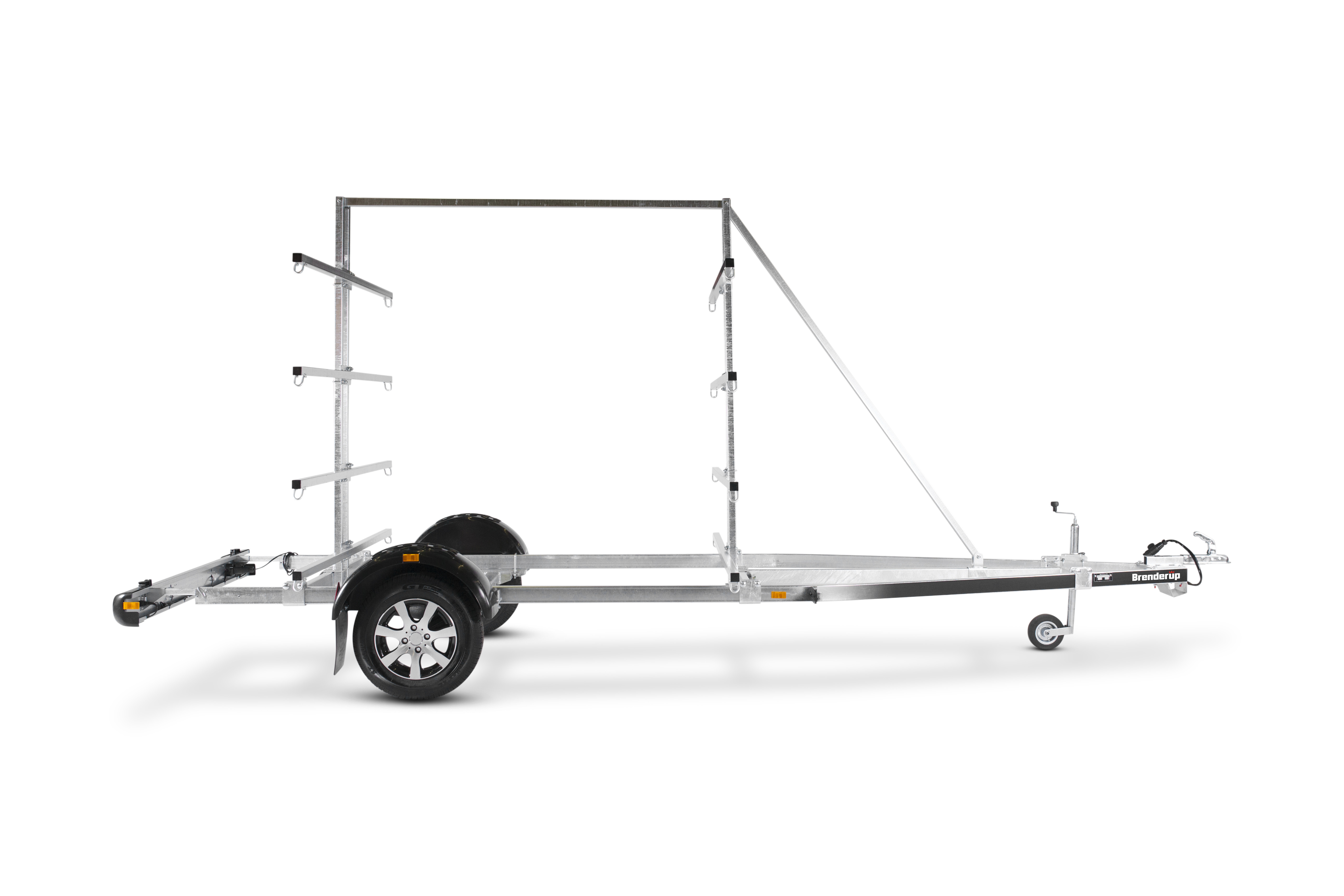 Med kano/kajaktraileren kan du let transportere op til 16 kajakker og 8 kanoer ad gangen. Stativet er justerbart afhængigt af størrelsen på dine kanoer/kajakker. Den V-formede trækstang giver en sikker og stabil transport af dine både. Varmgalvaniseret chassis og vandtætte lejer for længere levetid og maksimal beskyttelse mod rust. Kablerne ligger beskyttet i trailerens chassis. Lygtebommen sikrer let og hurtig søsætning af din båd, og lygtebommen kan opbevares i bilens bagagerum under sejlturen. Heldækkende skærme som trinbræt. Traileren på billedet kan være vist med ekstraudstyr.