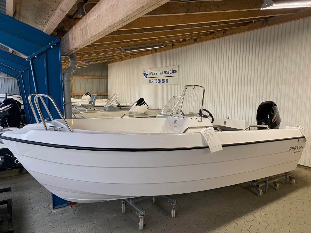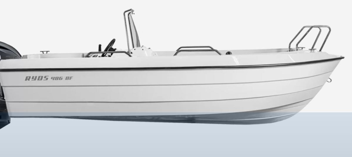 Med sit rummelige dæk er der plads til det meste, og er der folk med, kan du supplere med en eller to ekstra stuvekasser med siddepladser. Ryds 486 BF er en perfekt kystbåd med sit robuste og stabile skrog. 486 BF går omkring 25 knob med en 30 hk Mercury motor.