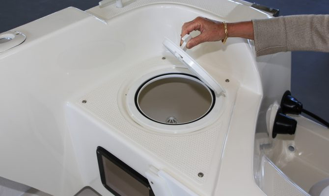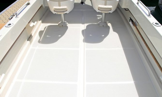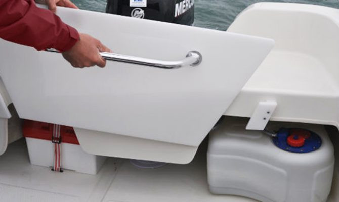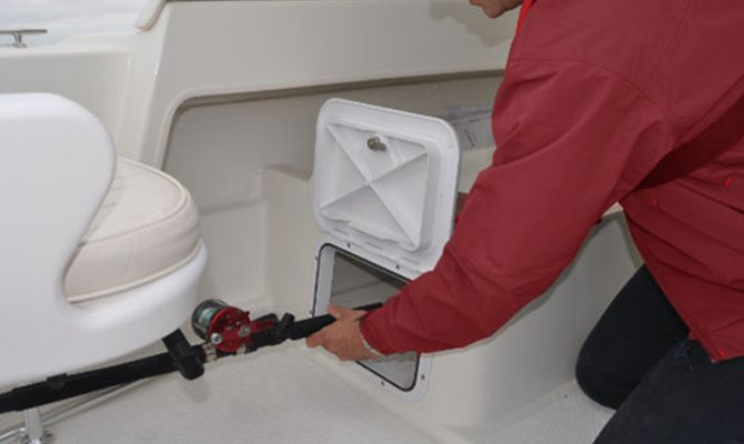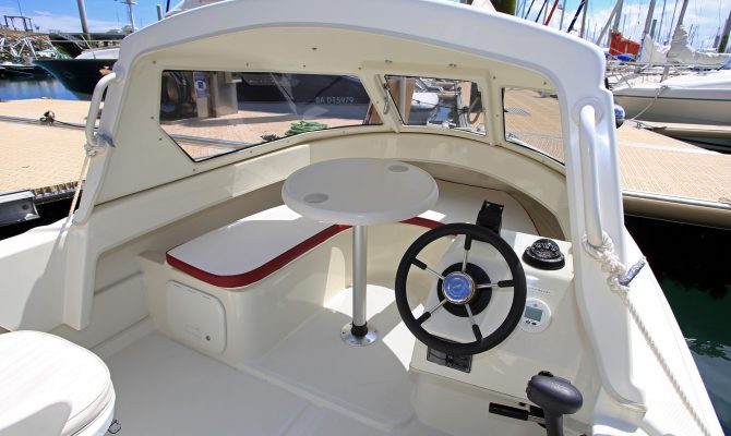 | Udstyr | Ankerbrønd, bov rulle, pullerter, stævn øje, øjer agter, fire stangholdere, drejeligt førersæde og passagersæde med hynder, styresystem med rat, to stuverum, stuverum til fiskestænger, kemisk toilet, integeret agnbrønd, manuel lænsepumpe, elektrisk lænsep |